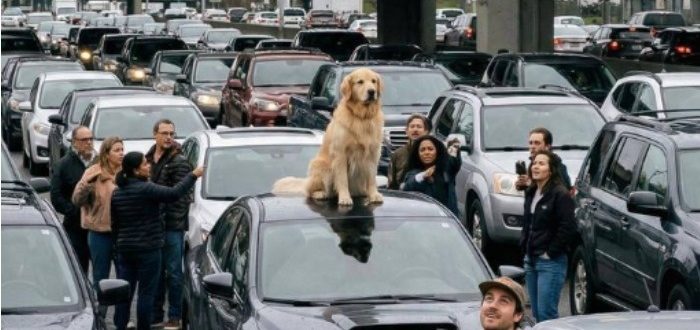 Pies wspiął się na dach zaparkowanego samochodu, wydając ciche, rozdzierające serce skomlenie. To nie był zwykły hałas — to była wiadomość. Błaganie, którego nikt jeszcze nie potrafił zrozumieć.