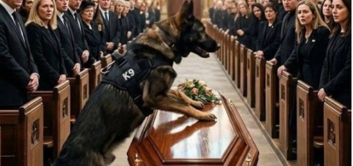 Wszyscy w kościele zamarli, gdy policyjny pies rzucił się naprzód, desperacko szczekając na trumnę funkcjonariusza, odmawiając pozwolenia komukolwiek na zbliżenie się. Funkcjonariusze próbowali go powstrzymać, ale owczarek niemiecki