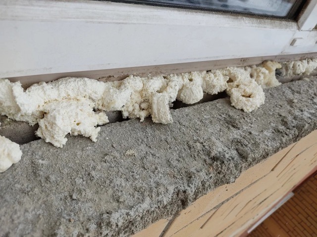 Około rok temu, po zamontowaniu okien, zauważyłem kilka szczelin pod parapetem i wypełniłem je pianką. Nie byłem pewien, co dzieje się na zewnątrz, ale skupiłem się na tym, co mogę naprawić w środku.