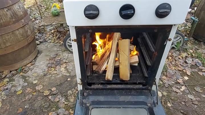 Zamknij drzwiczki piekarnika i umieść na nim metalowy ruszt. Otrzymasz prawdziwy piec zewnętrzny, który będzie nawet wyglądał trochę jak mały kominek.