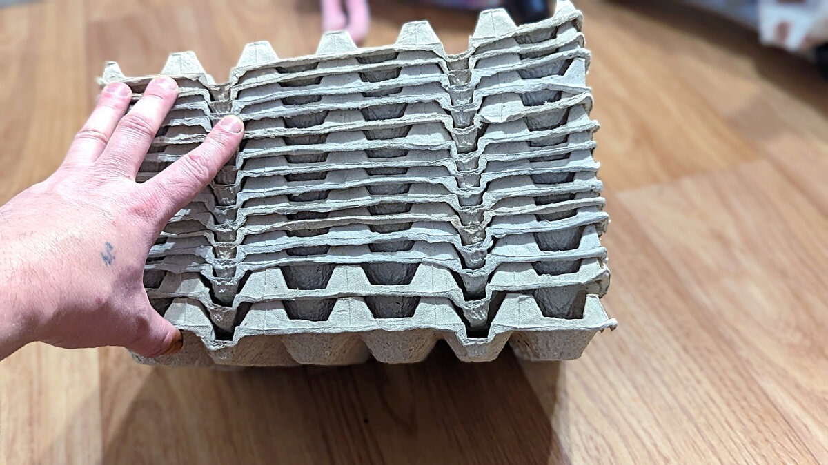Gdy nasiona są już w środku, ułóż tacki jedna na drugiej. W ten sposób możesz przygotować wszystko z wyprzedzeniem i po prostu czekać na wiosnę. Kiedy nadejdzie czas sadzenia, przekop i spulchnij glebę w swoim ogrodzie, upewniając się, że jest wilgotna. Umieść przygotowane tacki na jajka z nasionami bezpośrednio na grządce, obok siebie.