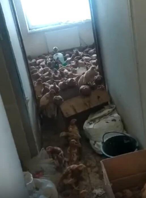 Kurczaki były wszędzie. Górne piętro zostało całkowicie przekształcone w kurnik. Ptaki wypełniały każdy centymetr podłogi, pióra były porozrzucane, a odchody pokrywały niegdyś czyste powierzchnie. Smród unoszący się w powietrzu jeszcze bardziej pogarszał sytuację.