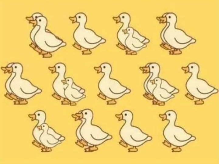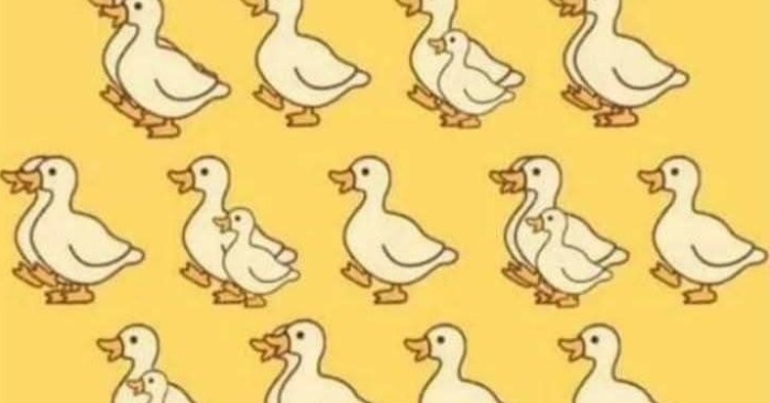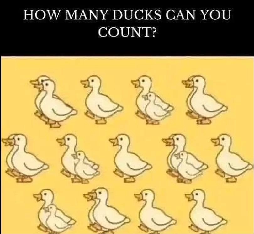 Na pierwszy rzut oka obrazek wygląda dość prosto: rzędy małych białych kaczek maszerujących równo po jasnożółtym tle. Ale jest pewien haczyk — pytanie brzmi: „Ile kaczek możesz policzyć?”, a odpowiedź nie jest tak prosta, jak się wydaje.