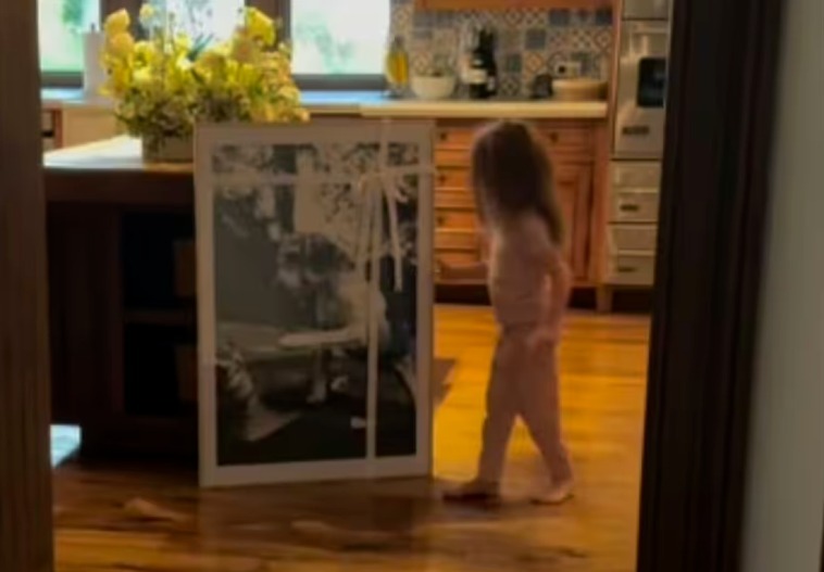 Książę zaskoczył swoją żonę dużym oprawionym zdjęciem przedstawiającym Meghan wraz z jej zmarłym beagle’em, Guyem. W krótkim klipie widać małą Lilibet w piżamie, która całuje zdjęcie, a następnie kieruje się do rodzinnej kuchni w Montecito.