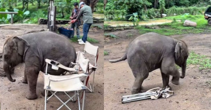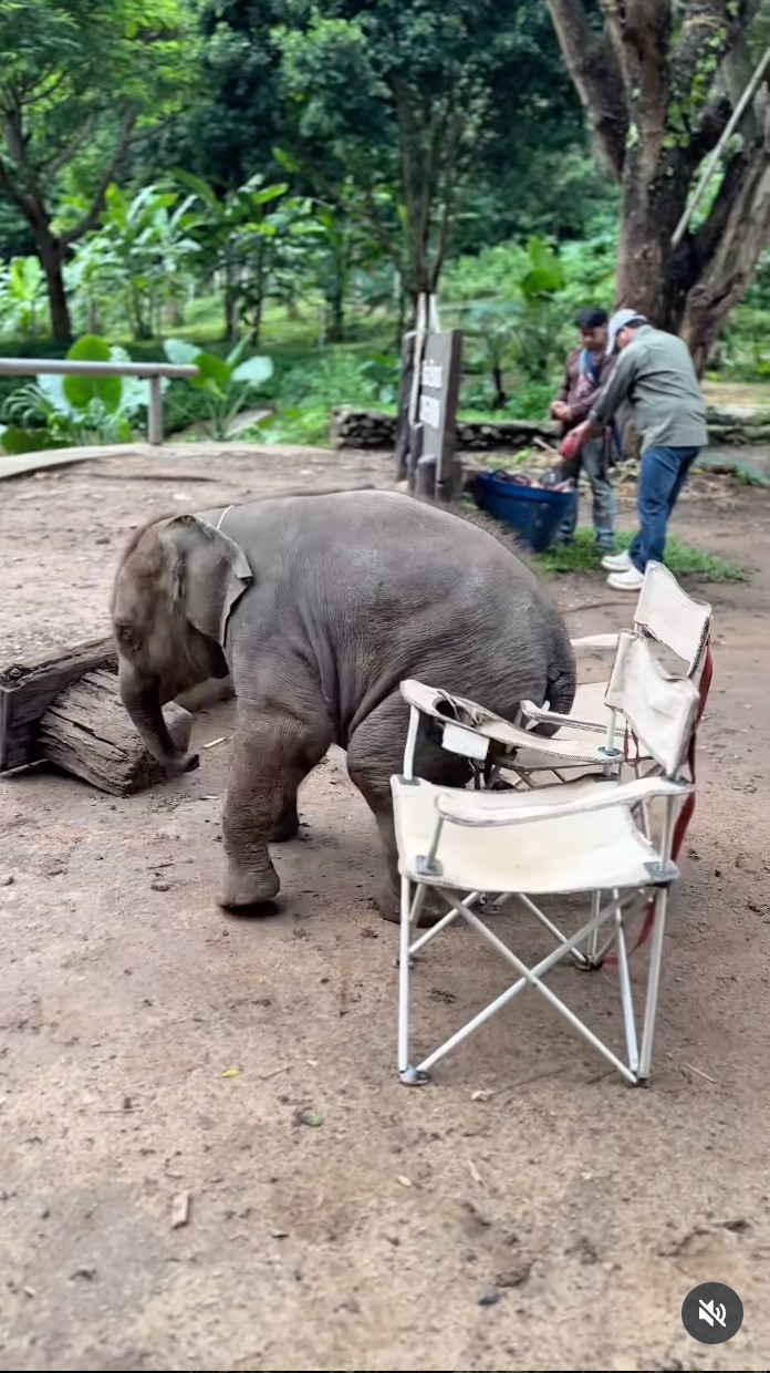 Nagranie, udostępnione na Instagramie przez tuskershelter, pokazuje figlarne słoniątko próbujące usiąść na składanym krześle. Oczywiście próba nie do końca się udaje, ale to właśnie ta niezdarna próba sprawia, że jest to tak urocze.