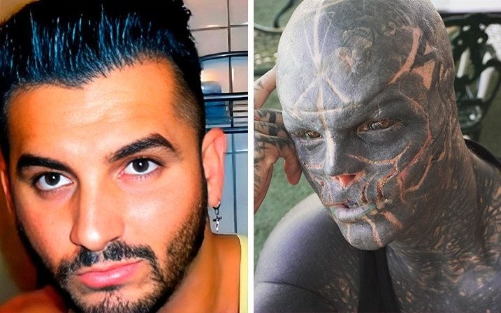 Jego podróż rozpoczęła się od pokrycia całego ciała czarnymi tatuażami i poddania się bolesnej procedurze zmiany koloru oczu. Przeciął język na pół, wszczepił sztuczne kształty pod skórę, a później poszedł jeszcze dalej – usunął palce, aby jego dłonie przypominały pazury, oraz amputował nos i górną wargę. Dzisiaj jego wygląd jest prawie nie do rozpoznania jako ludzki.