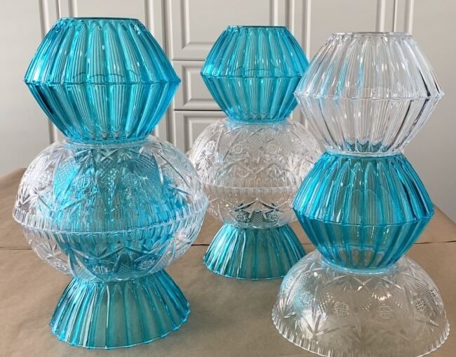 Krok 3: Twórz stosy, łącząc pary misek — bardzo podobało mi się mieszanie przezroczystych i niebieskich.