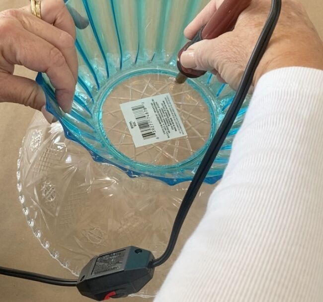 Krok 1: Za pomocą narzędzia do podgrzewania wytop otwór w dnie mniejszej miski. Następnie użyj go jako wzoru, aby wyciąć pasujący otwór w jednej z większych misek.