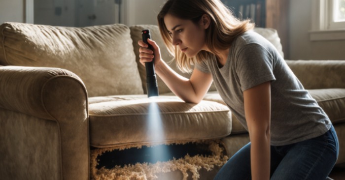 W końcu pewnego wieczoru postanowiła rozebrać całą kanapę. Zdjęła poduszki, podważyła podszewkę pod spodem — i zamarła.