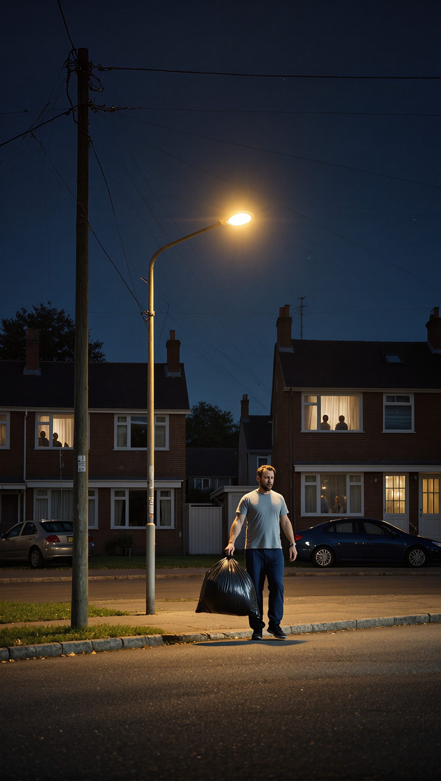 Sophie, która mieszkała po drugiej stronie ulicy, przyznała, że zaczęła ustawiać budzik, żeby podglądać przez żaluzje. „To była zawsze ta sama rutyna” – powiedziała później. „Czekał, aż cała ulica ucichnie, a potem wyrzucał worek. Zawsze jeden. Zawsze o północy”.