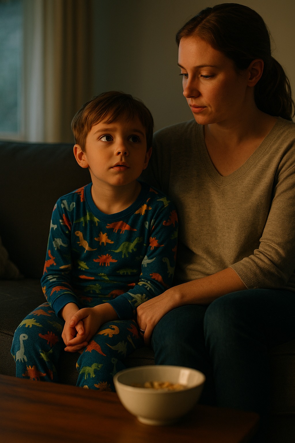 Był to jeden z tych leniwych sobotnich poranków, które wydają się małym prezentem. Nadal mieliśmy na sobie piżamy, na stoliku stały półpuste miski po płatkach, a salon wypełniał cichy szum bajek. Mój syn leżał zwinięty obok mnie, z nogami schowanymi pod kocem, a włosy wystawały mu we wszystkich kierunkach po śnie.