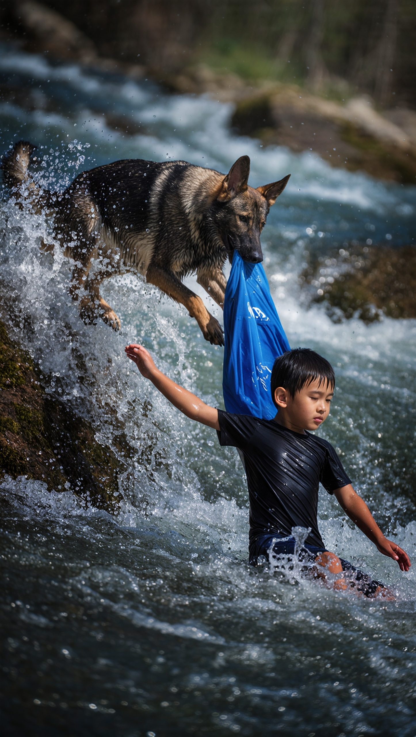 Max nie zawahał się. Bez chwili wahania owczarek niemiecki rzucił się prosto do rzeki. Mark mógł tylko patrzeć, jak jego pies walczy z rwącą wodą, wiosłując zaciekle w kierunku chłopca. Ludzie zaczęli się gromadzić, wzdychając i krzycząc, gdy dramatyczna scena rozgrywała się na ich oczach.