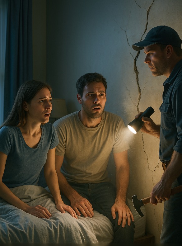 Następnego ranka zadzwonili do wykonawcy. „Stare domy wydają dziwne odgłosy” – zapewnił ich, przewracając oczami. Ale kiedy przycisnął się do ściany, jego uśmiech zniknął. „Coś tu jest… puste”. Kawałek po kawałku zaczął rozrywać płytę gipsowo-kartonową. Pokój wypełnił się kurzem. Para wstrzymała oddech. A potem – jednym ostatnim uderzeniem – ściana pękła. To, co zobaczyli w środku, sprawiło, że zaniemówili.