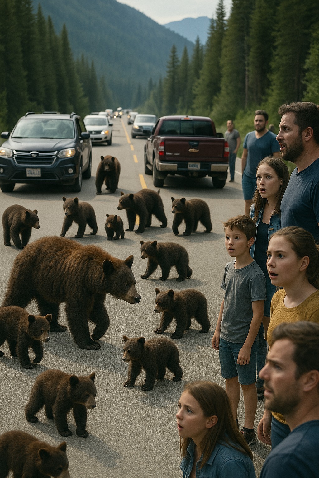 Stało się to w słoneczne popołudnie, kiedy samochody nagle zatrzymały się na ruchliwej górskiej autostradzie. Na początku nikt nie rozumiał dlaczego. Jednak gdy kolejka pojazdów wydłużyła się do kilku kilometrów, nie można było już ignorować prawdy. Z drzew rosnących przy drodze wyszła mama niedźwiedzica z trzema małymi niedźwiadkami, które powoli szły prosto na asfalt.