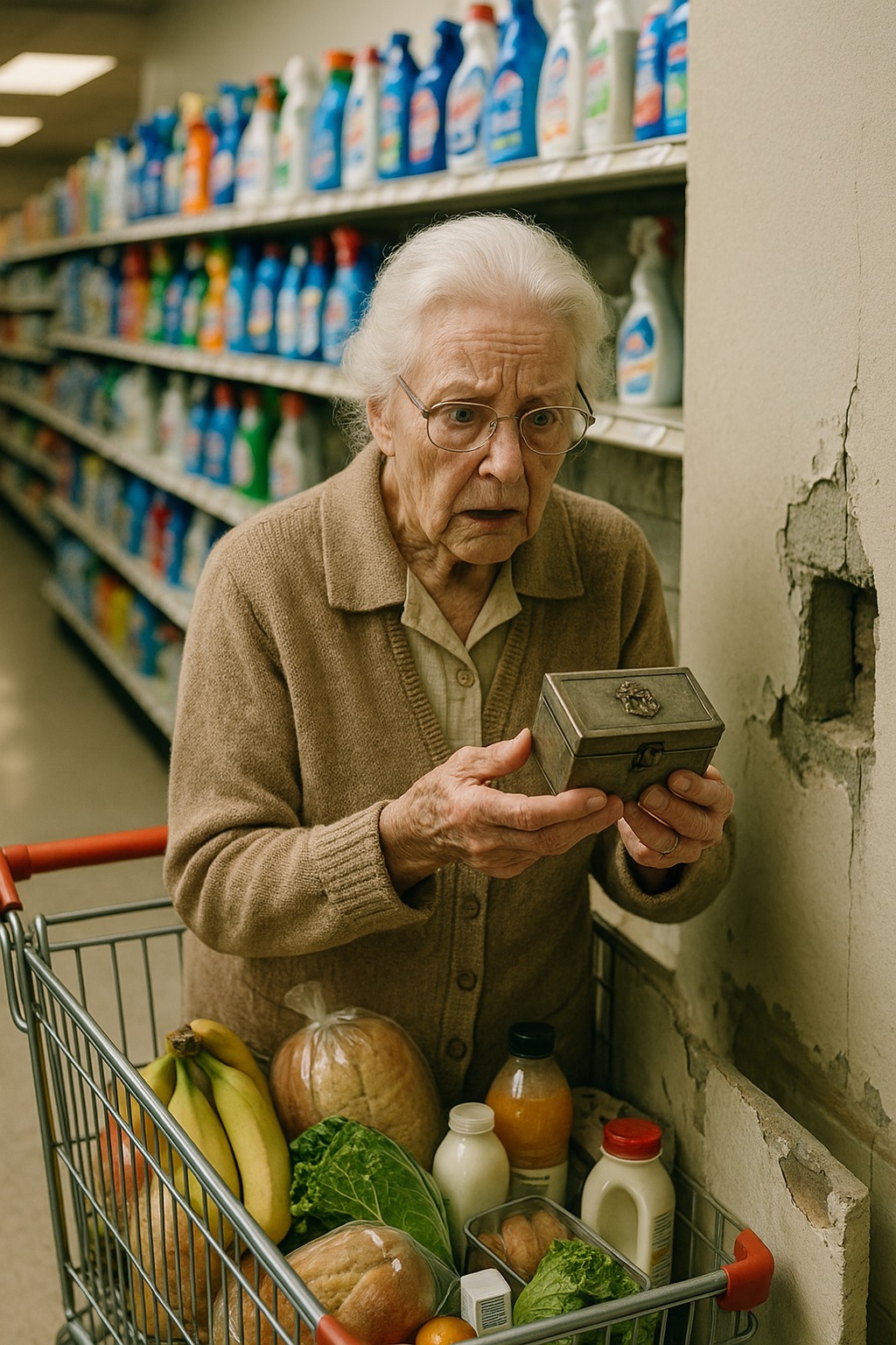 W zwykłą sobotę starsza babcia postanowiła pójść do najbliższego supermarketu po zakupy.