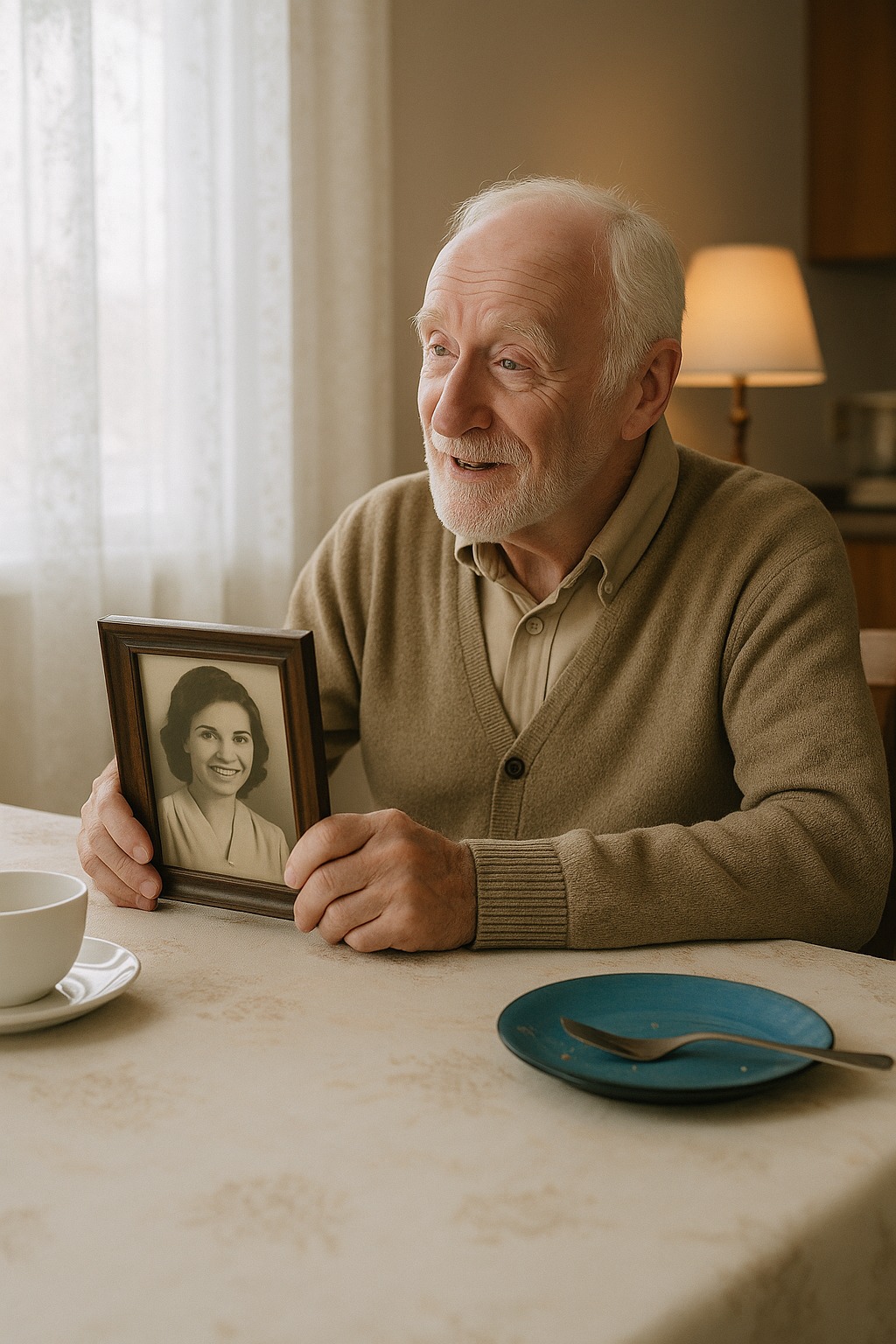 A sam staruszek nadal siedział wieczorami przy stole, patrząc na kolejną nową twarz w ramce. I nikt już nie był pewien, z kim tak naprawdę rozmawia.