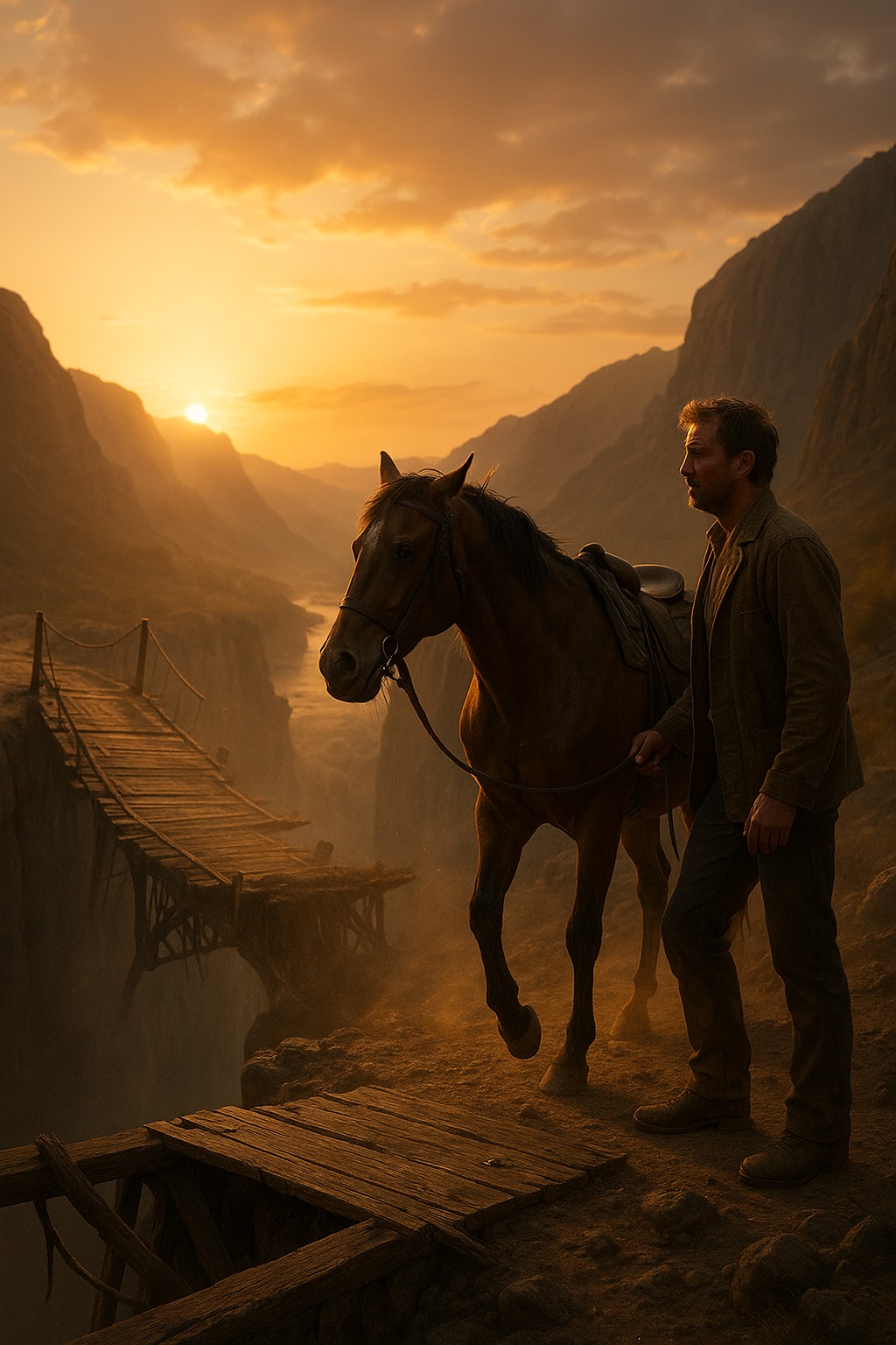 Tego dnia Marcos się spieszył. Droga w górskiej dolinie ciągnęła się wąską wstęgą między skałami, wiatr wzniecał pył, a słońce już chyliło się ku zachodowi. Musiał zdążyć przed zmrokiem — przed nim pozostał tylko stary most przez rzekę, za którym zaczynała się wioska.