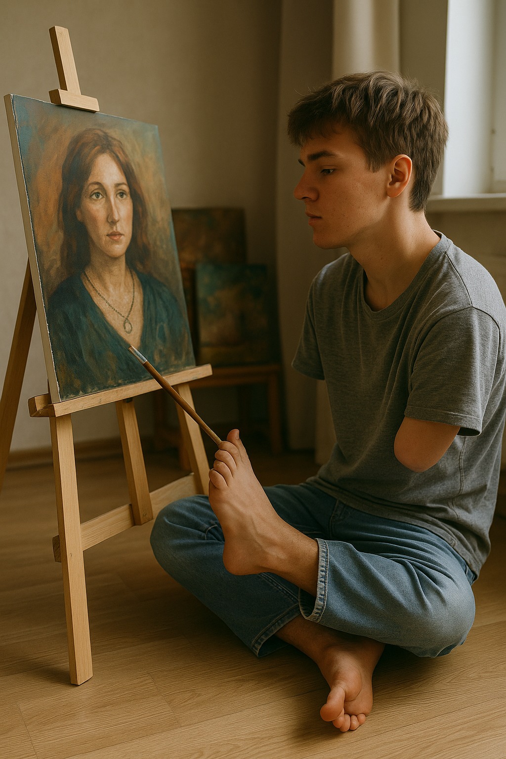 Od najmłodszych lat uczył się robić wszystko nogami — trzymać łyżkę, otwierać drzwi, przewracać strony w książkach. Ale pewnego dnia, w wieku sześciu lat, po raz pierwszy wziął pędzel w palce u stóp. I wszystko się zmieniło.
