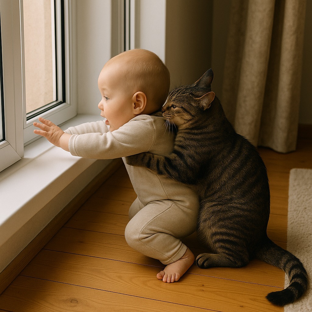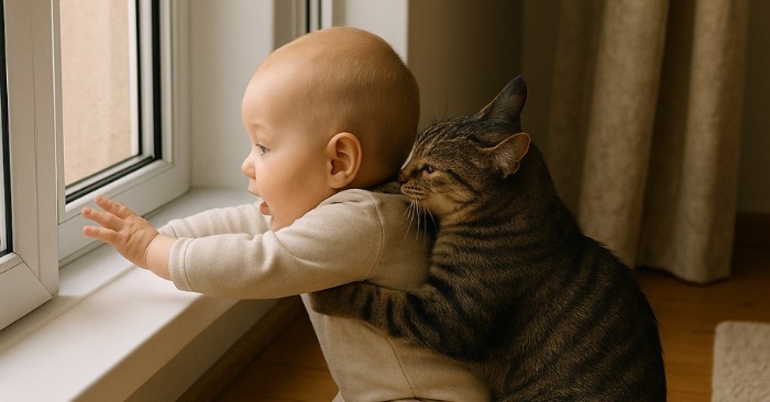 Shadow był już w pokoju. Skoczył na parapet, wbił pazury w sweterek dziecka i zaczął ciągnąć go do środka. W tej sekundzie Emma wbiegła i zdążyła chwycić synka za biodra — dosłownie chwilę przed tym, jak moskitiera odpadła.