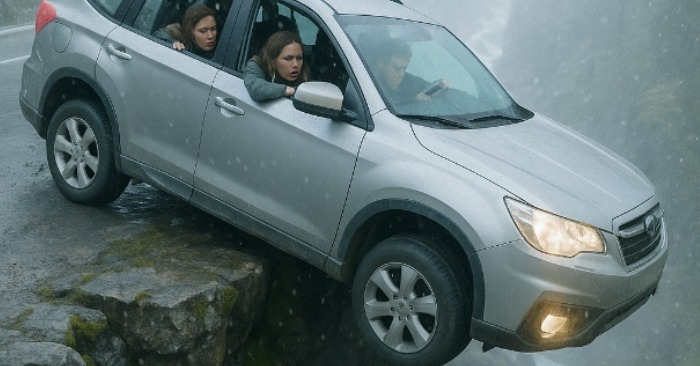 Staliśmy na wąskim pasie ziemi nad przepaścią. Poniżej — ciemny las i urwisko. Samochód zatrzymały tylko dwa ogromne kamienie. Śnieg sypał coraz gęściej, drogi prawie nie było widać. Telefony — bez zasięgu.