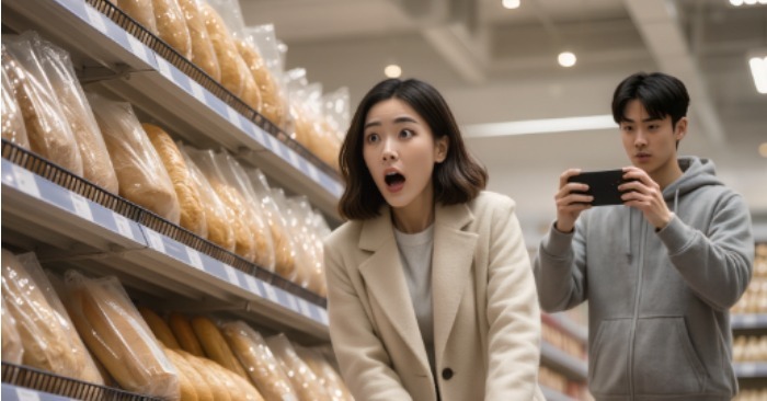 Na początku pomyśleli, że żartuje. Ale nie — na środkowej półce, między rzędami chrupiących bagietek, naprawdę coś się poruszało.