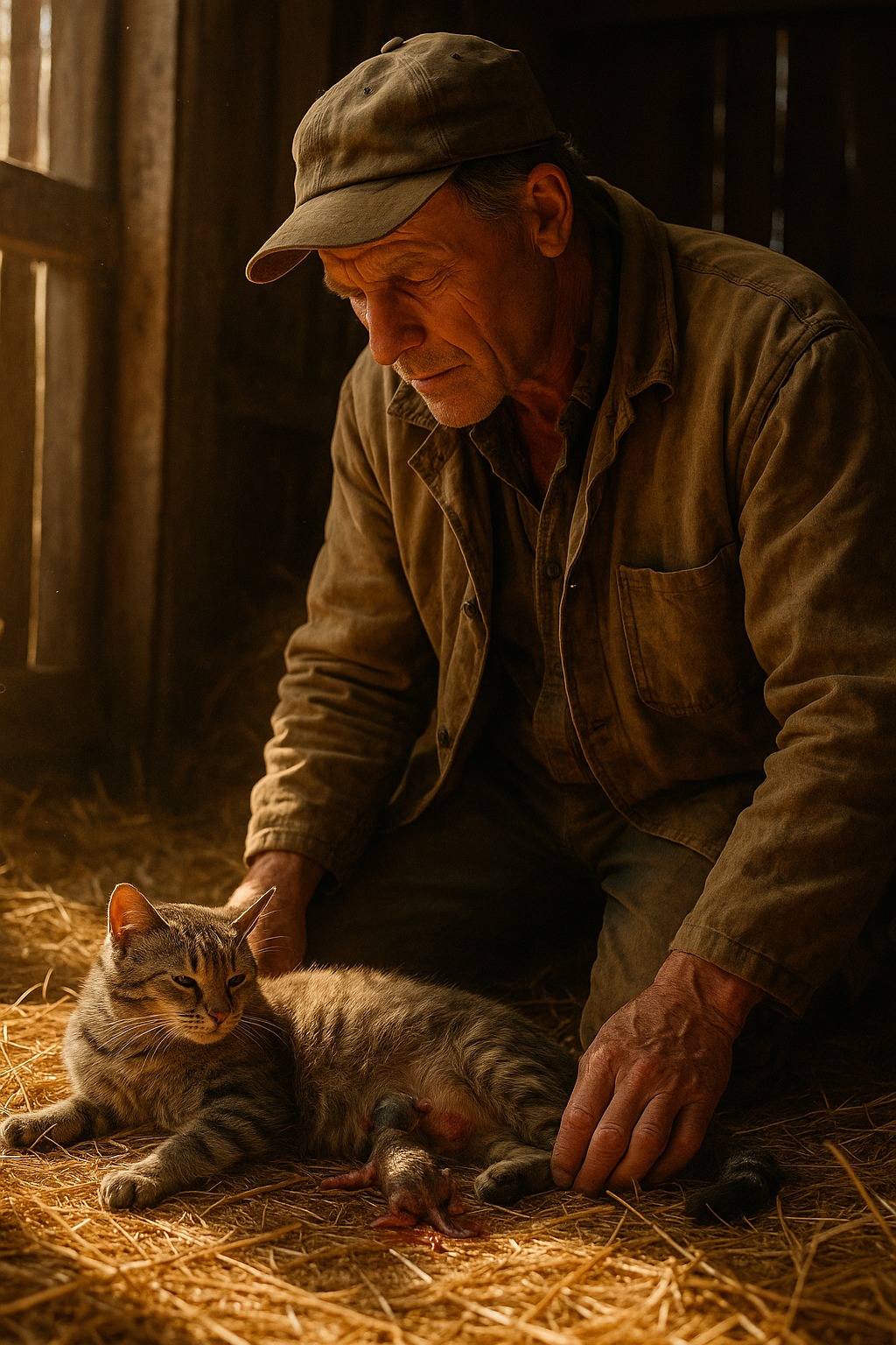 Przyniósł jej miskę mleka i trochę ciepłego siana. Kotka najpierw ostrożnie odsuwała się, ale potem, jakby postanowiła zaufać, wślizgnęła się w kąt stodoły i zwinęła w kłębek. Tak już została.