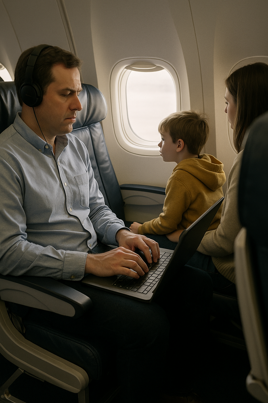 I nagle coś go poruszyło. W pamięci pojawił się obraz — on sam, jako taki sam chłopiec, leciał z ojcem i marzył, żeby usiąść przy oknie. Wtedy ojciec ustąpił mu miejsce. „Spójrz, synu, to świat z góry” — powiedział wtedy.