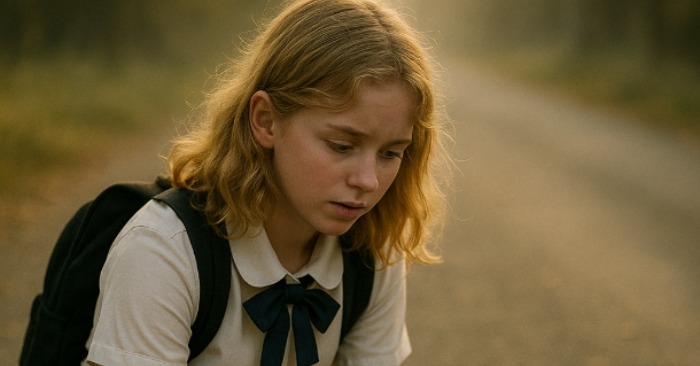 Na skraju drogi coś małego, ciemnego poruszyło się. Dziewczynka zatrzymała się i zamarła: pies. Mały, młody, cały drżał. Na boku miał otarcia, sierść sklejoną krwią. Najwyraźniej potrącił go samochód i odjechał. Podniósł na nią oczy — ogromne, przerażone, jakby pytały: „Odejdziesz? Zostawisz mnie?”. Dziewczynka nie mogła przejść obojętnie.