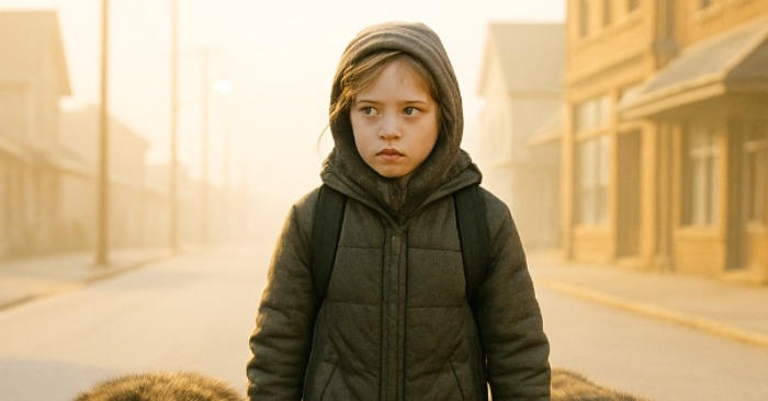 Każdego ranka, gdy tylko świt dotykał dachów małego miasteczka, na ulicy pojawiała się dziewczynka – delikatna, blada, z dużym plecakiem na plecach. Nazywała się Lisa. Obok niej zawsze szły dwa ogromne psy – masywne owczarki kaukaskie, tak duże, że w porównaniu z nią wyglądały jak prawdziwe niedźwiedzie.