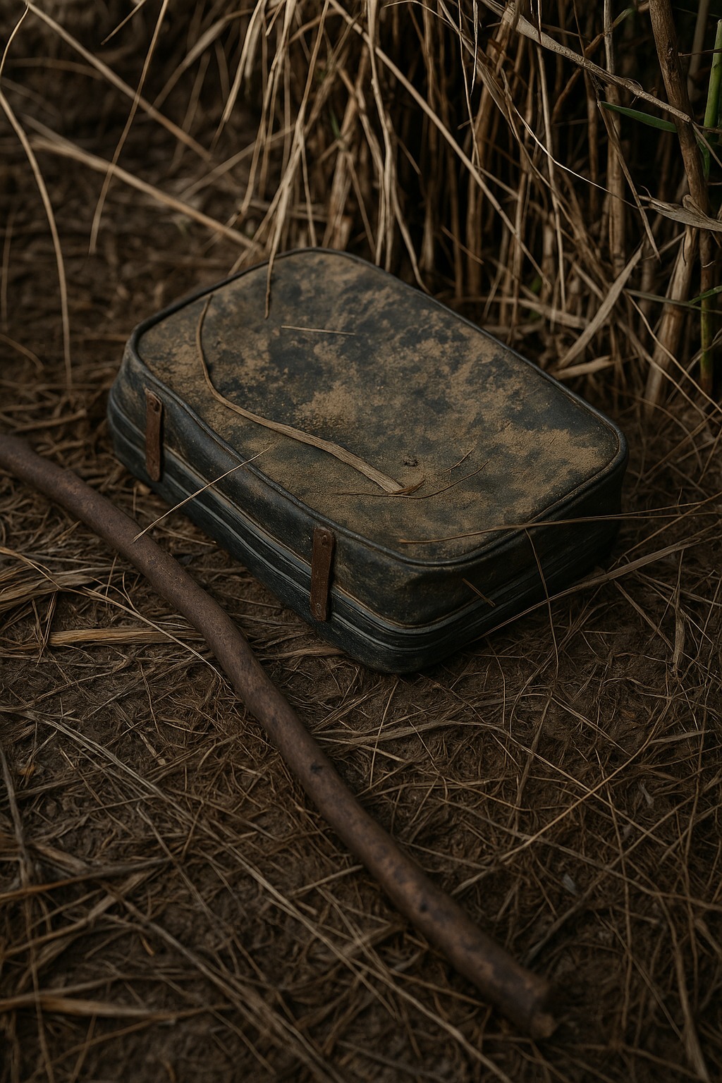 Nieco z boku ścieżki, prosto na mokrej trawie, leżała brudna, prawie zatopiona w ziemi walizka. Czarna, podarta, z zardzewiałym zamkiem — wyglądała tak, jakby leżała tu nie tylko tygodnie, ale lata.