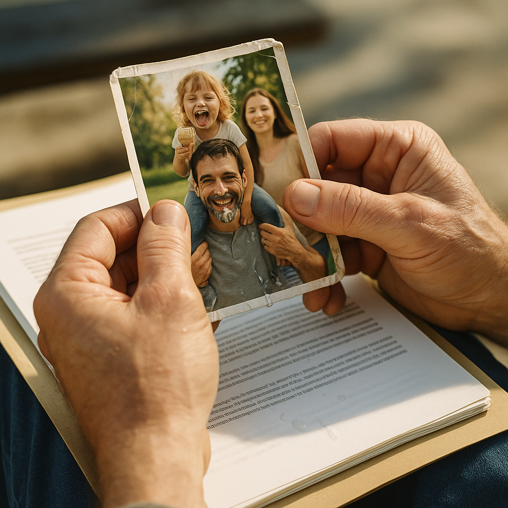 Długo siedzieli w milczeniu, otoczeni odgłosami miasta. Emma przesunęła kciukiem po krawędzi starego zdjęcia.