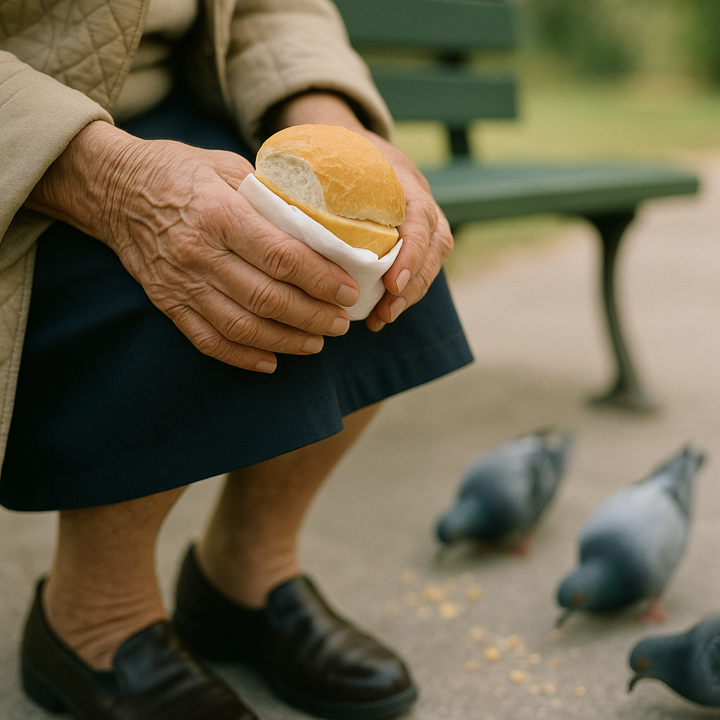 Starsza kobieta rozłożyła papierową serwetkę. W środku leżała mała, idealna kanapka zawinięta w folię spożywczą. Nie zjadła jej. Po prostu położyła ją obok siebie na ławce, wygładzając serwetkę, jakby była czymś świętym, po czym znów wpatrywała się w bramę parku.