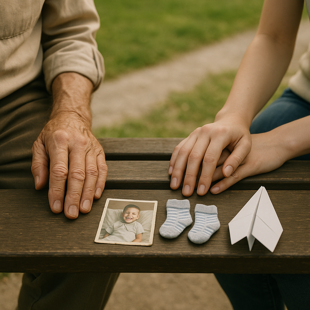 Mężczyzna chwycił się krawędzi ławki. „Nigdy nie pozwolili mi się pożegnać” – wyszeptał. „Byłem w autobusie. Korki. Bateria w telefonie mi padła. Kiedy tam dotarłem, powiedzieli, że odszedł. Zabrali go, zanim go zobaczyłem. Moja córka… obwiniała mnie. Zrobiła wszystkie zdjęcia. Powiedziała, że go zawiodłem”.