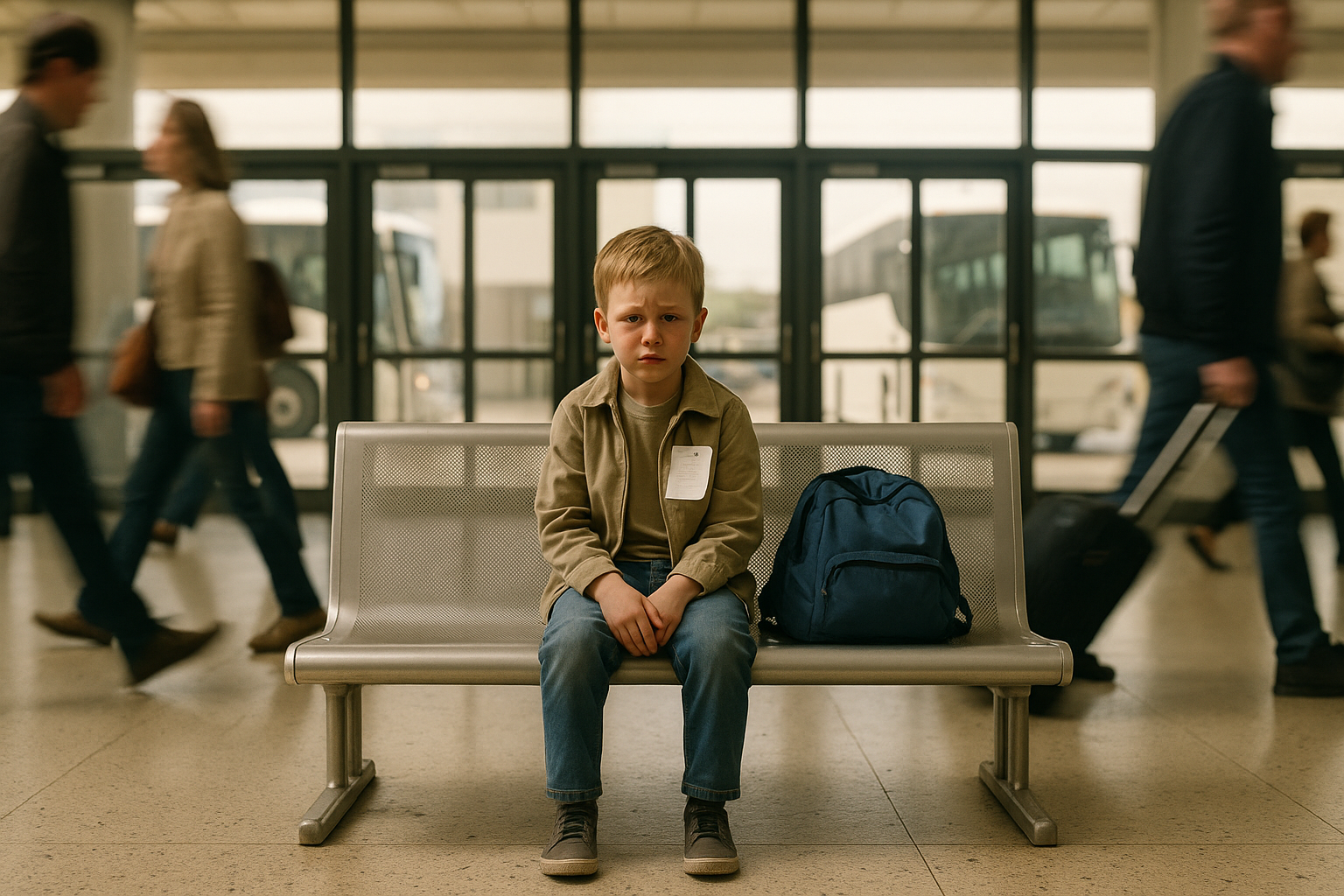 Ludzie przychodzili i odchodzili. Nad nim rozbrzmiewały echa ogłoszeń, wymieniając miasta, o których nigdy nie słyszał. Gdzieś płakało dziecko. Mężczyzna śmiał się zbyt głośno. Nikt się nie zatrzymał. Nikt nie pytał, dlaczego mały chłopiec siedział sam, z nogami nie dotykającymi podłogi, z oczami utkwionymi w szklanych drzwiach, za którymi zniknęła jego matka.