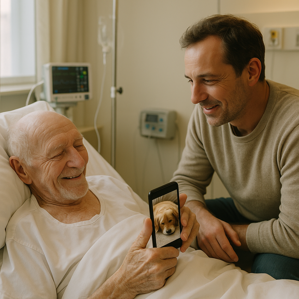 Zadzwoniłem pod numer karetki przyczepionej do jego drzwi. Pielęgniarka brzmiała na zmęczoną. Tak, był tam. Tak, był osłabiony. Nie, odwiedziny dzisiaj nie były dozwolone. „Ciągle pyta o psa” — dodała. „Powiedzieliśmy mu, że zwierzęta nie są dozwolone. Płakał”.