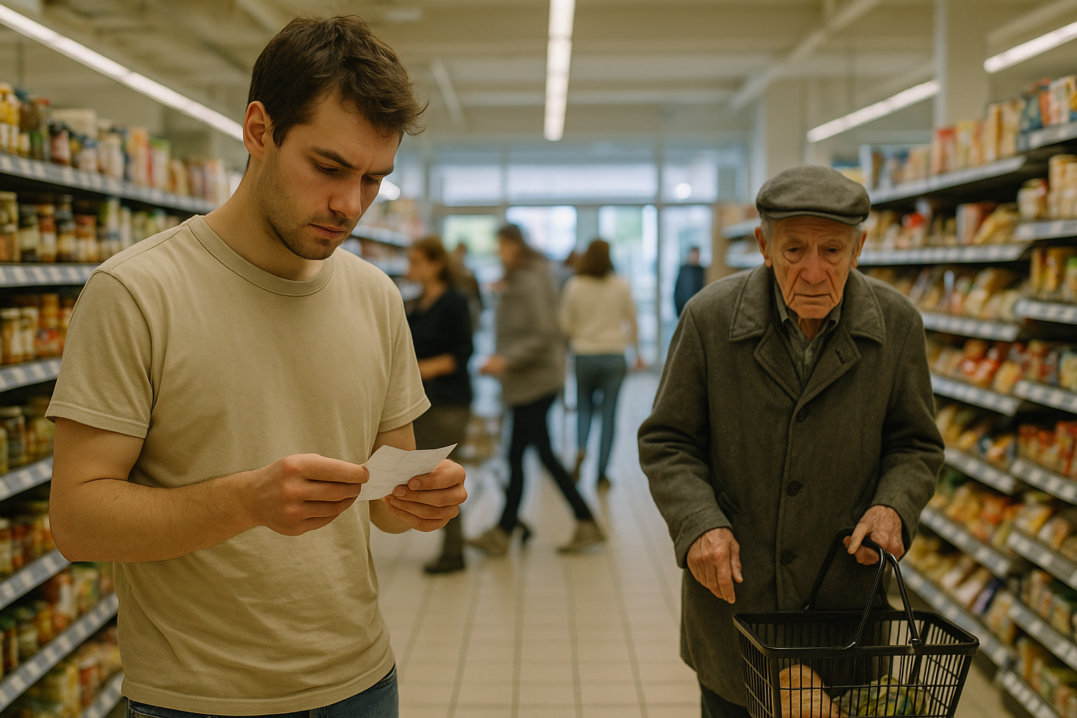 Stał tam, drobny i lekko zgarbiony, w starym szarym płaszczu, który wyglądał na o rozmiar za duży. Jedynym jasnym elementem w jego spojrzeniu były jego oczy: wyblakłe, niebieskie, ale boleśnie przejrzyste. Nie powiedział ani słowa, tylko skinął głową w stronę wózka i cofnął się, jakby już spodziewał się, że zostanie zignorowany.