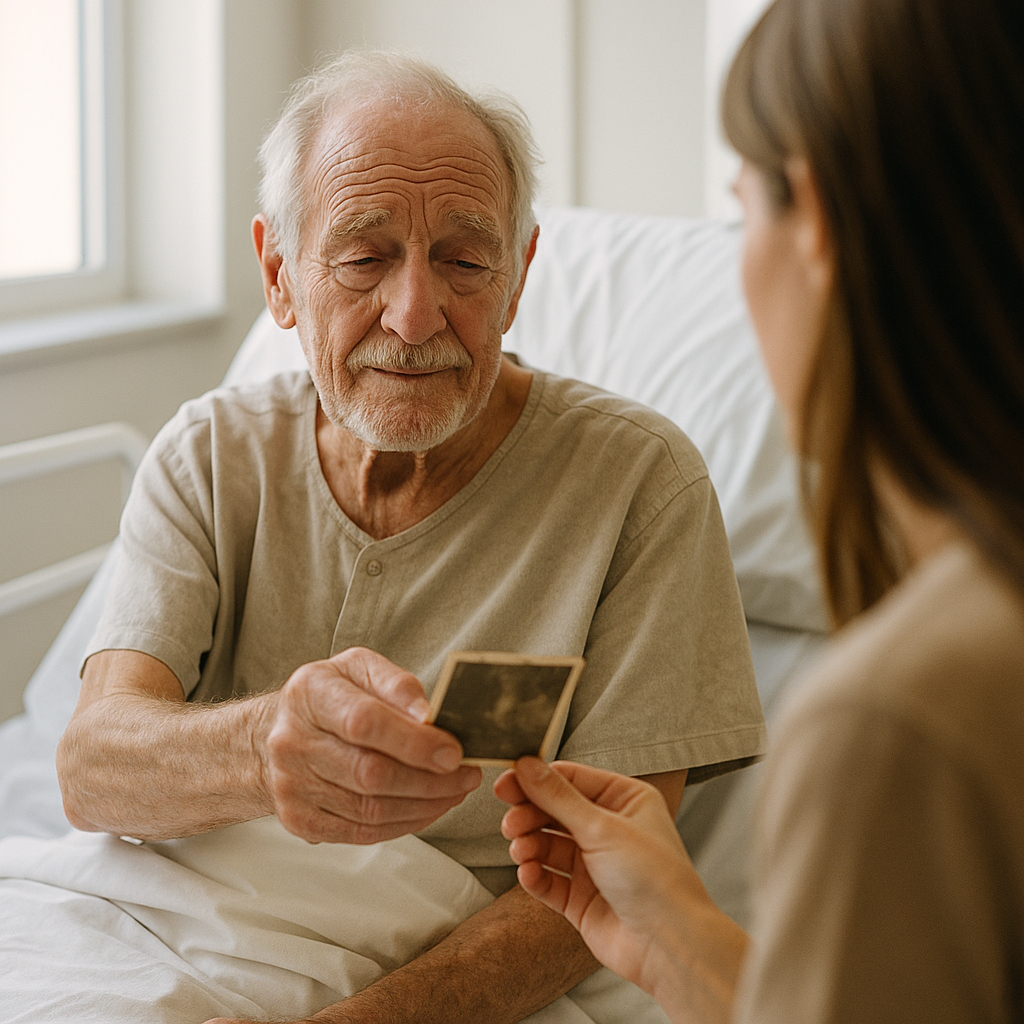 Pielęgniarka przyjrzała jej się uważnie. „Jeśli możesz się z nią skontaktować, proszę. Ciągle pyta, czy ktoś przyniósł zdjęcie”.