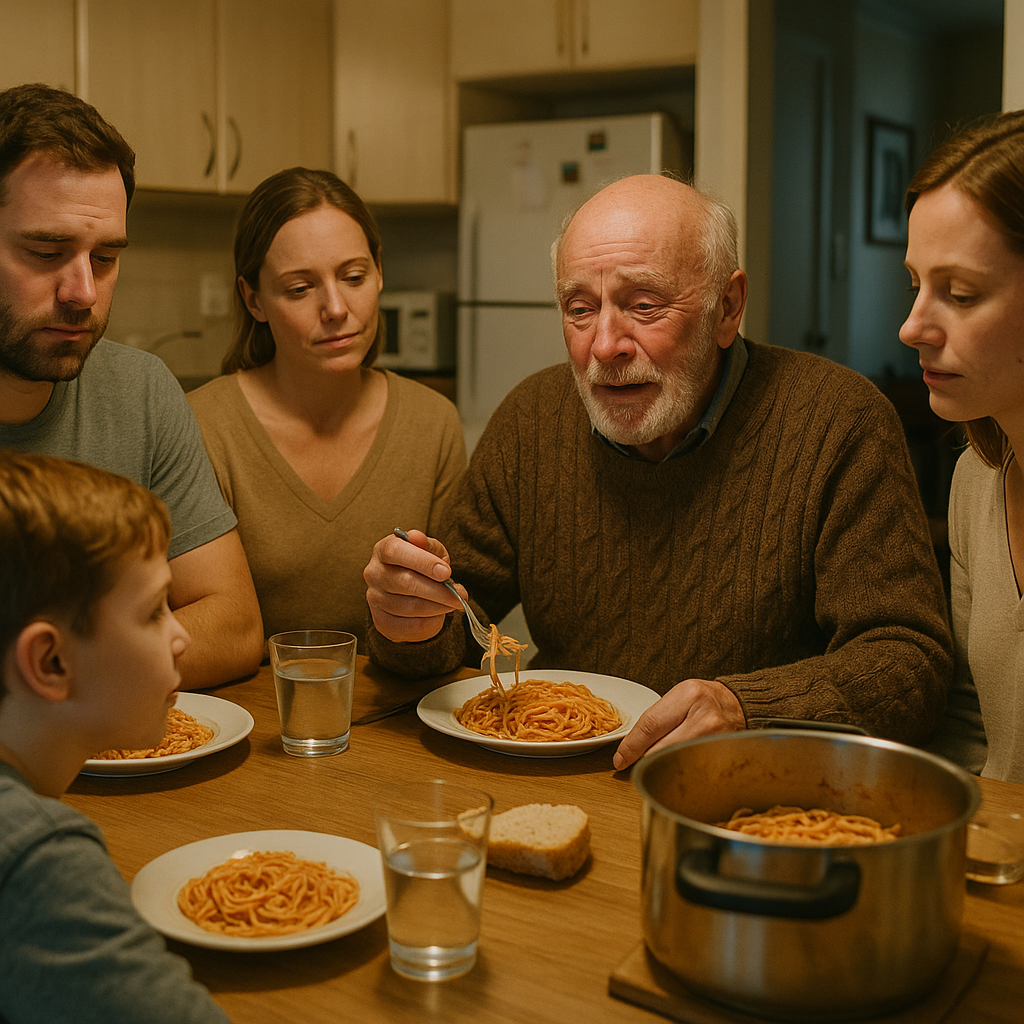 Leo podszedł bliżej, marszcząc brwi w swój poważny, powściągliwy sposób. „Moja babcia mieszka daleko” – powiedział. „Rozmawiam z nią przez telefon, żeby nie czuła się samotna. Możesz… zjeść z nami. Jeśli chcesz. Dzisiaj mamy spaghetti”.