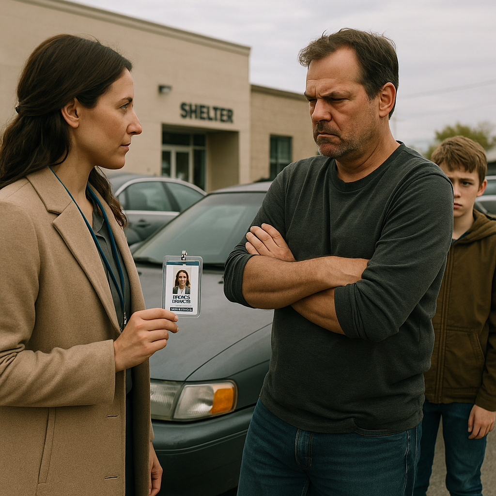 Emily pokazała swoją odznakę. „Jestem z opieki społecznej. Musimy porozmawiać”.