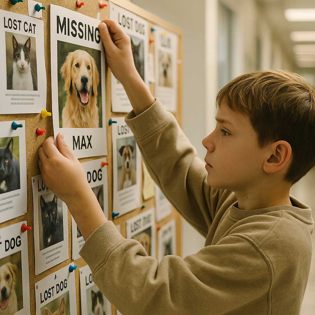 Anna zerknęła na zdjęcie. Pies na ulotce wyglądał jak każdy golden retriever: łagodne oczy, jasna sierść, siwy pysk. Ale ręce chłopca drżały.