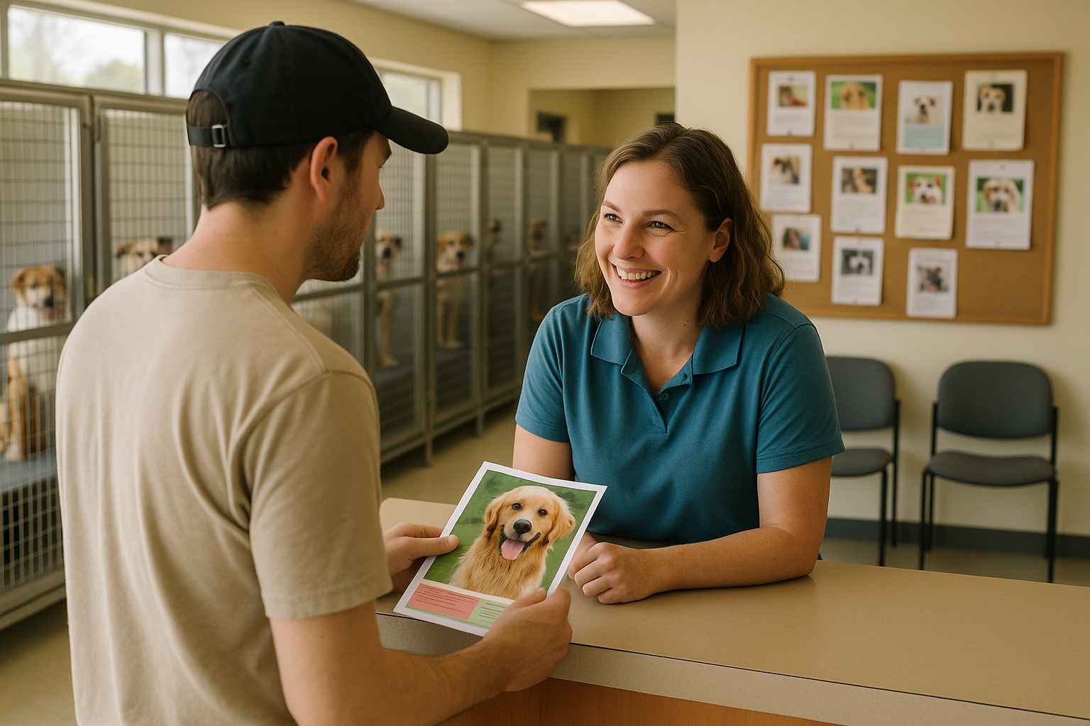 Anna zerknęła na zdjęcie. Pies na ulotce wyglądał jak każdy golden retriever: łagodne oczy, jasna sierść, siwy pysk. Ale ręce chłopca drżały.