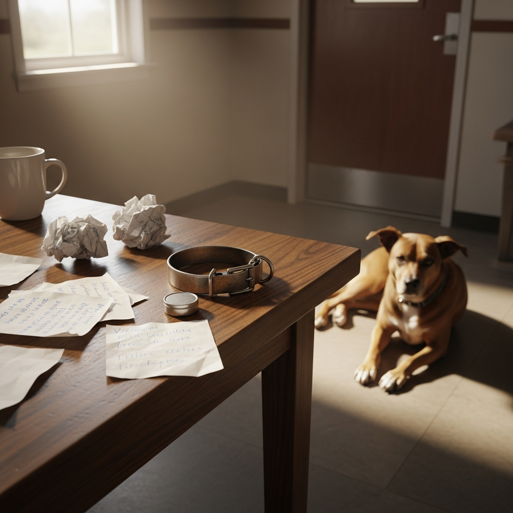 „Blisko” – powiedział szybko. „Naprawdę blisko. Obiecuję, Lucky jest u mnie bezpieczny. Po prostu… czasami muszę go tu przyprowadzić. Tylko na chwilę”.