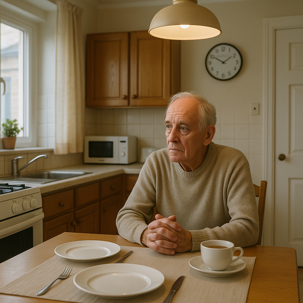 Właśnie siedział w swojej cichej kuchni, zegar tykał zbyt głośno, herbata stygła zbyt szybko, a krzesło naprzeciwko niego było boleśnie puste, gdy zadzwonił dzwonek. Sześć ostrych dźwięków dokładnie o 18:00.