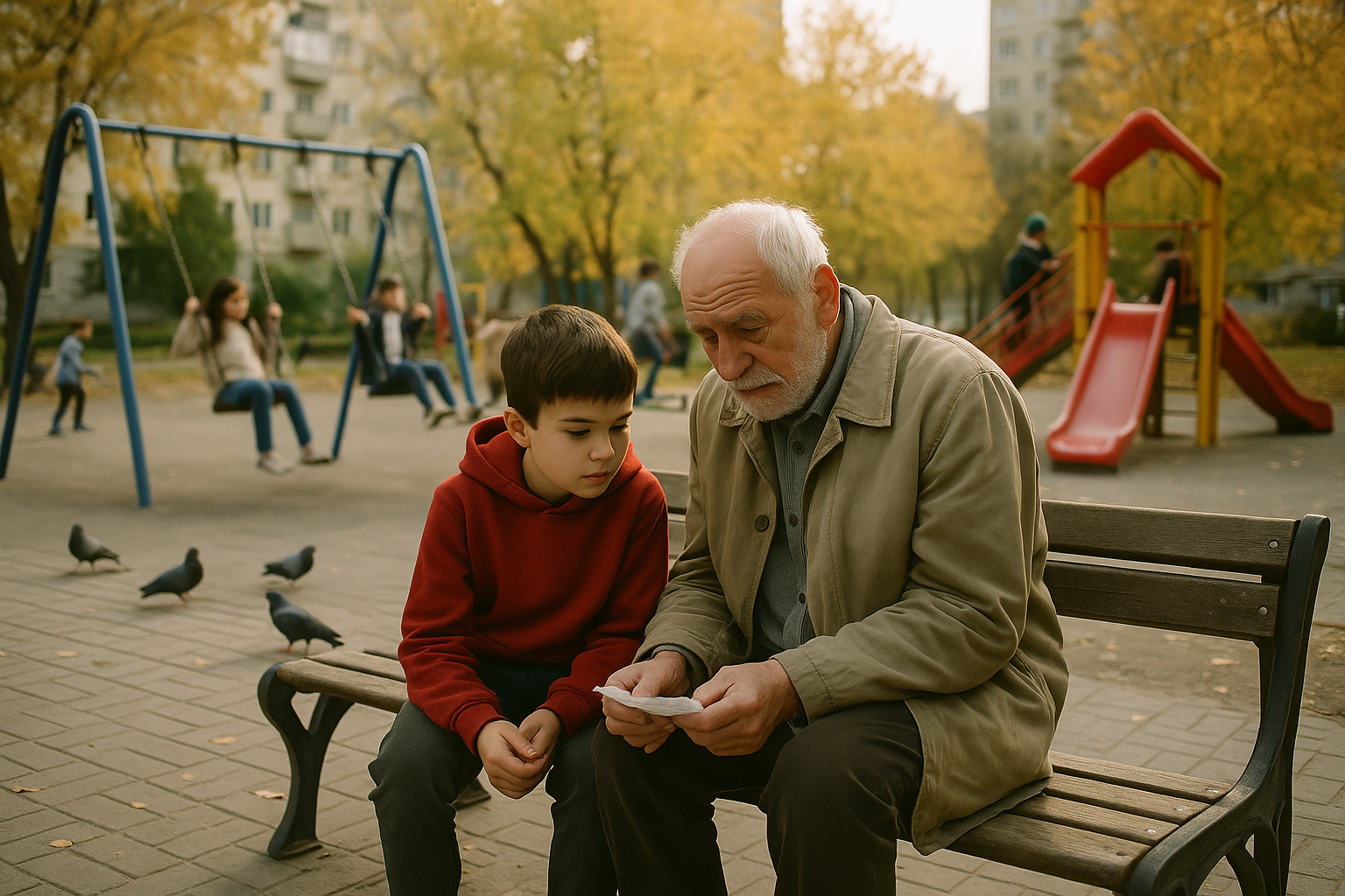 Tomek wybrał najdalszą ławkę, tę częściowo ukrytą za rozrośniętym krzakiem bzu. Stamtąd mógł obserwować plac zabaw, niezauważony przez nikogo. Huśtawki skrzypiały, dzieci krzyczały, rodzice przeglądali telefony. A pośród tego całego hałasu siedział w milczeniu, dzień po dniu, z plastikową torbą chleba, którego nigdy do końca nie udało mu się skończyć.