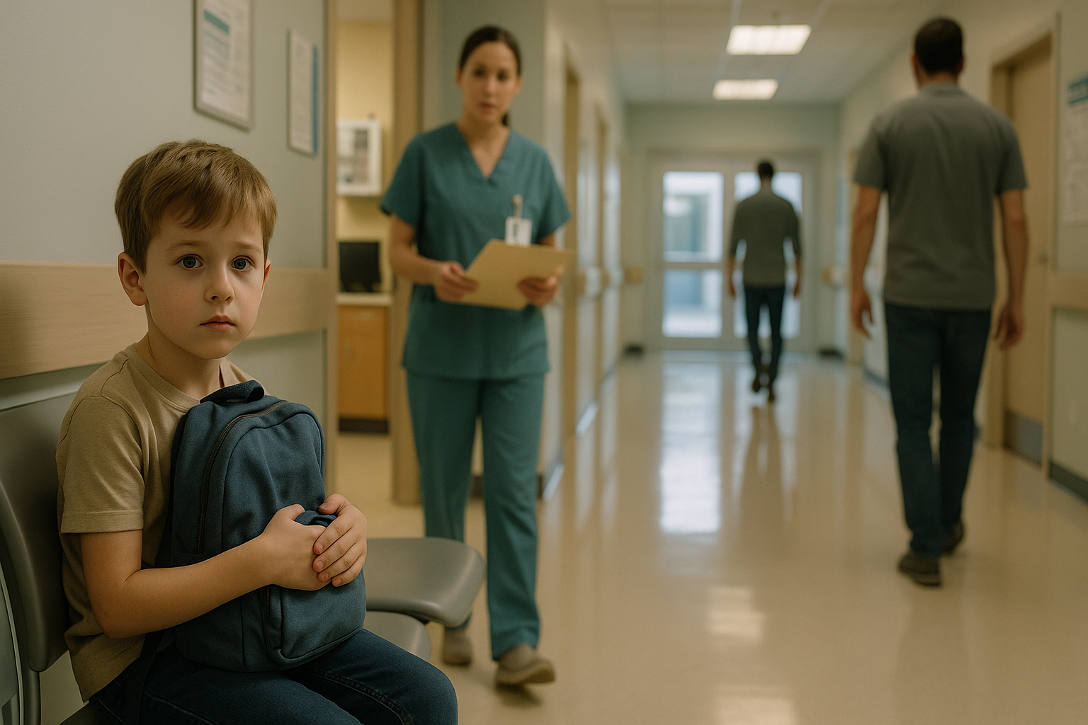 Tego dnia, kiedy Mark zostawił swojego 6-letniego syna na szpitalnym korytarzu i odszedł, jakby go nie znał, pielęgniarka upuściła podkładkę. Chłopiec nie płakał. Po prostu siedział wyprostowany na metalowej ławce, nogami sięgając podłogi, ściskając wyblakły, niebieski plecak, jakby był ostatnią solidną rzeczą na świecie.