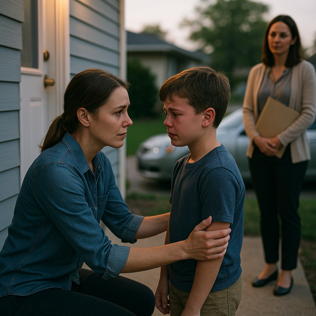Odwrócił się do mnie na ganku. „Jeśli… jeśli nie pozwolą ci zostać moją przybraną mamą” – powiedział głosem ledwie słyszalnym szeptem – „czy nadal… będziesz mnie odwiedzać? Czy też o mnie zapomnisz?”