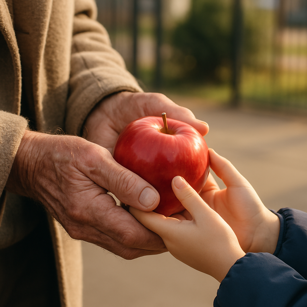 Za nami brama szkoły skrzypiała na wietrze, a ja pomyślałem o starcu, na którego nikt nie czekał… aż do momentu, gdy mały chłopiec z jabłkiem w zapasie postanowił, że nikt nie powinien stać sam o trzeciej.
