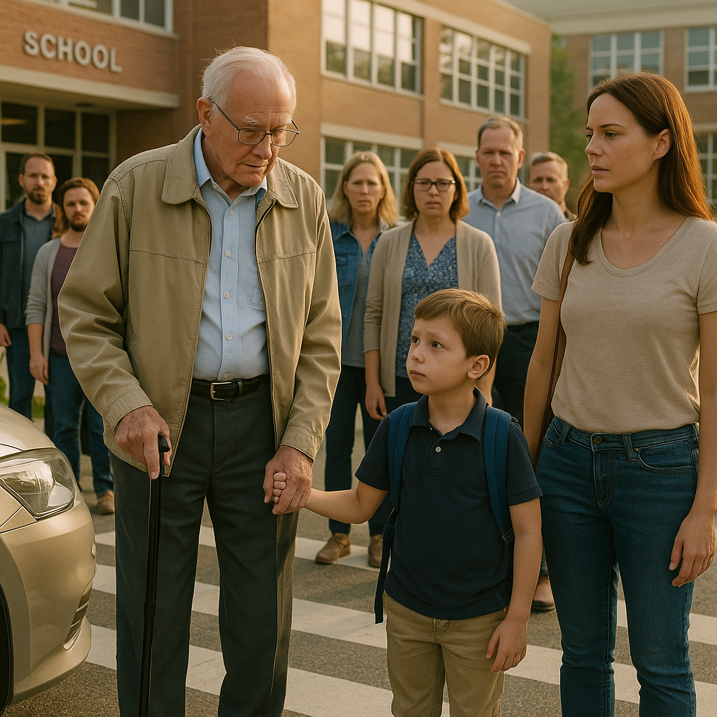„Nie było mnie tu, kiedy mój wnuk przechodził” – wyszeptał. „Miał na imię Liam. Był mniej więcej w twoim wieku. Uciekł, bo dzwonił dzwonek. Samochód się nie zatrzymał”. Zatrzymał się, a jego oczy zaszkliły. „Myślałem, że jeśli postoję tu wystarczająco długo, ktoś przypomni sobie, że obiecali, że to miejsce będzie bezpieczne”.