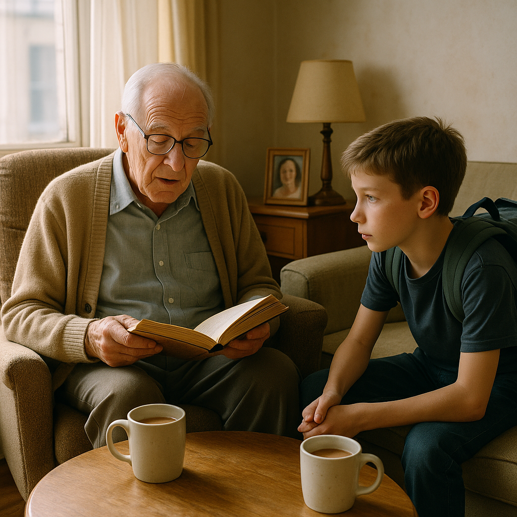 Kiedy pierwszy raz spotkałem Liama, o mało nie zamknąłem mu drzwi przed nosem. Był deszczowy wtorek, mój pierwszy tydzień samotności po śmierci mojej żony Emmy. Świat za oknem wydawał się zbyt głośny, zbyt jasny, zbyt obojętny. Właśnie usiadłem z miską zupy, której nie chciałem, gdy rozległo się pukanie: trzy krótkie stuknięcia, a potem cisza.