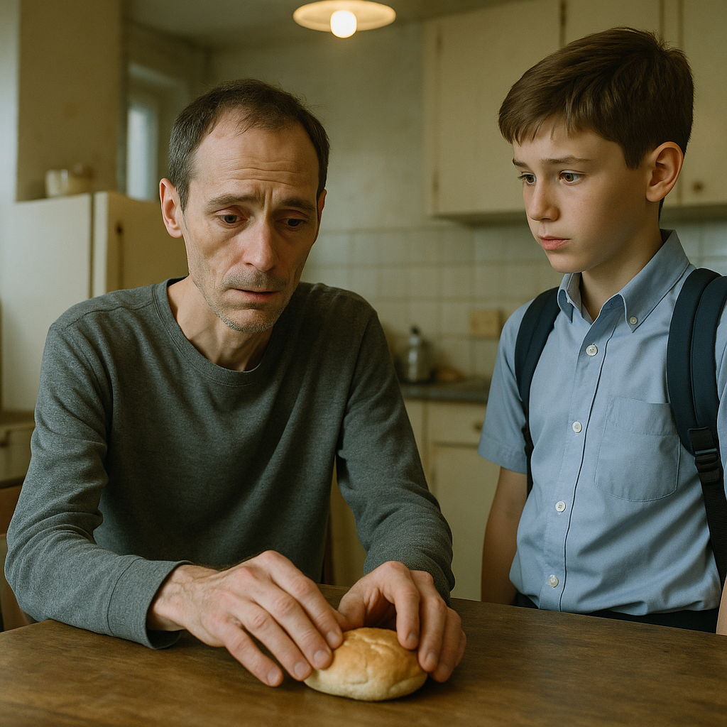 Daniel zawahał się, po czym rozdarł bułkę na pół, podając kawałek synowi. Ale kiedy Liam udawał, że jest pełny, jego ojciec, zbyt zmęczony, by się sprzeciwiać, dokończył. Zamknął oczy na sekundę, jakby ten mały kawałek chleba dotarł gdzieś głęboko w jego wnętrzu.